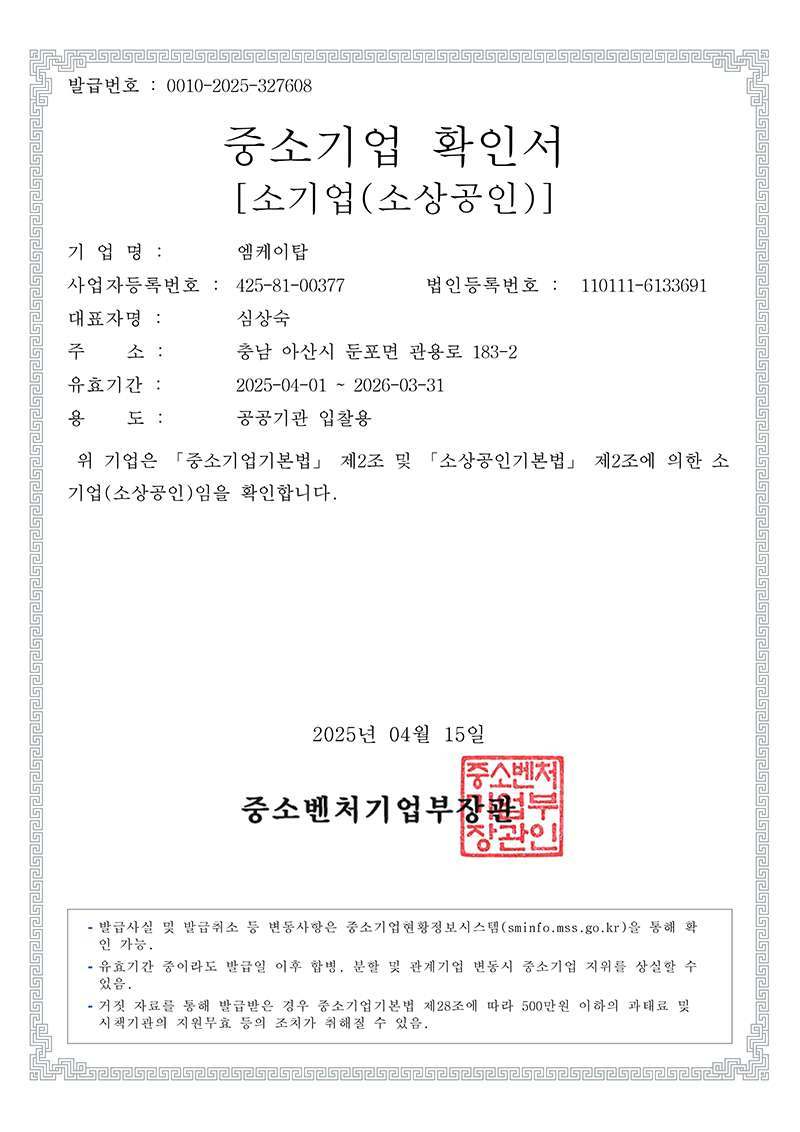 À¯¸ÁÁß¼Ò±â¾÷ ÀÎÁõ¼­