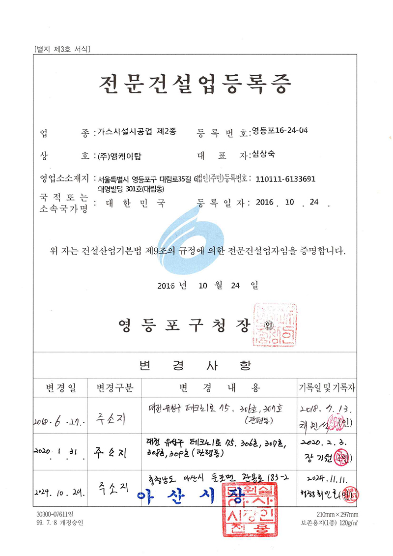 Àü¹®°Ç¼³¾÷µî·ÏÁõ